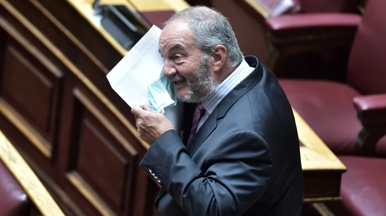 Agnwristos O Kwstas Karamanlhs Sth Boylh Afhse Moysi Kai Foroyse Maska Politikh Eidhseis